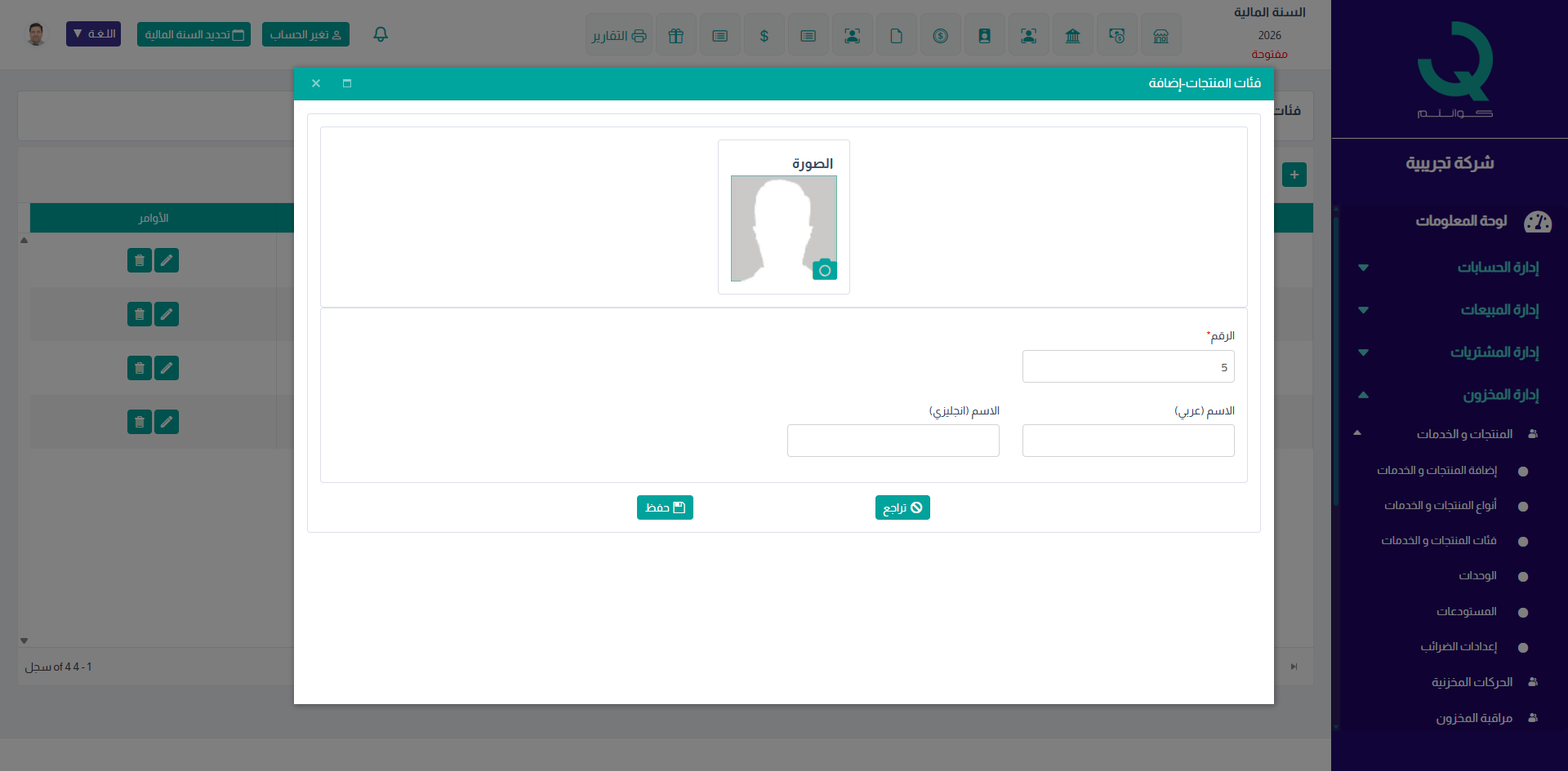 بعد إدخال البيانات، اضغط على حفظ لإضافة النوع، أو تراجع لإلغاء العملية.