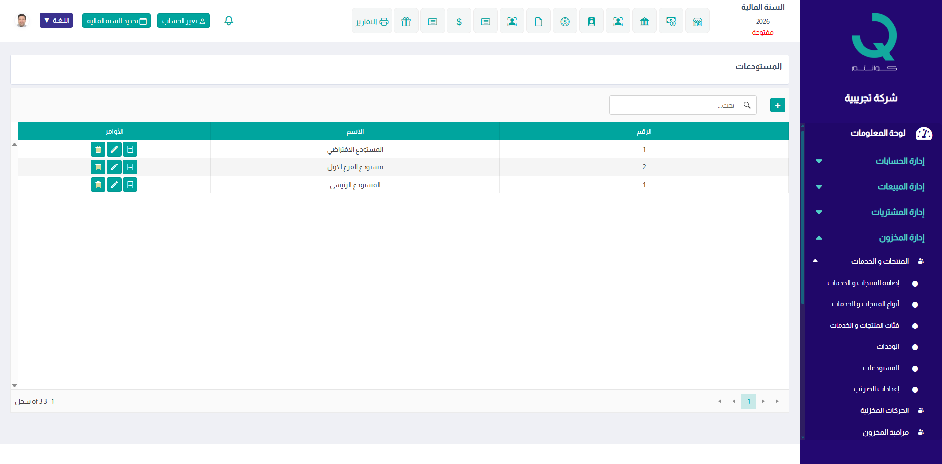 - يمكن إنشاء أكثر من مستودع حسب فروع الشركة.