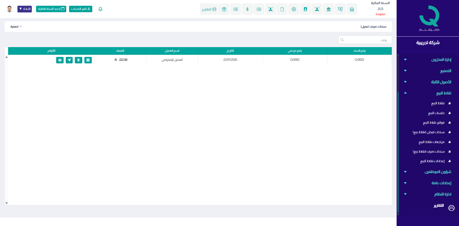 - يؤثر سند الصرف مباشرة على رصيد جلسة نقاط البيع.
