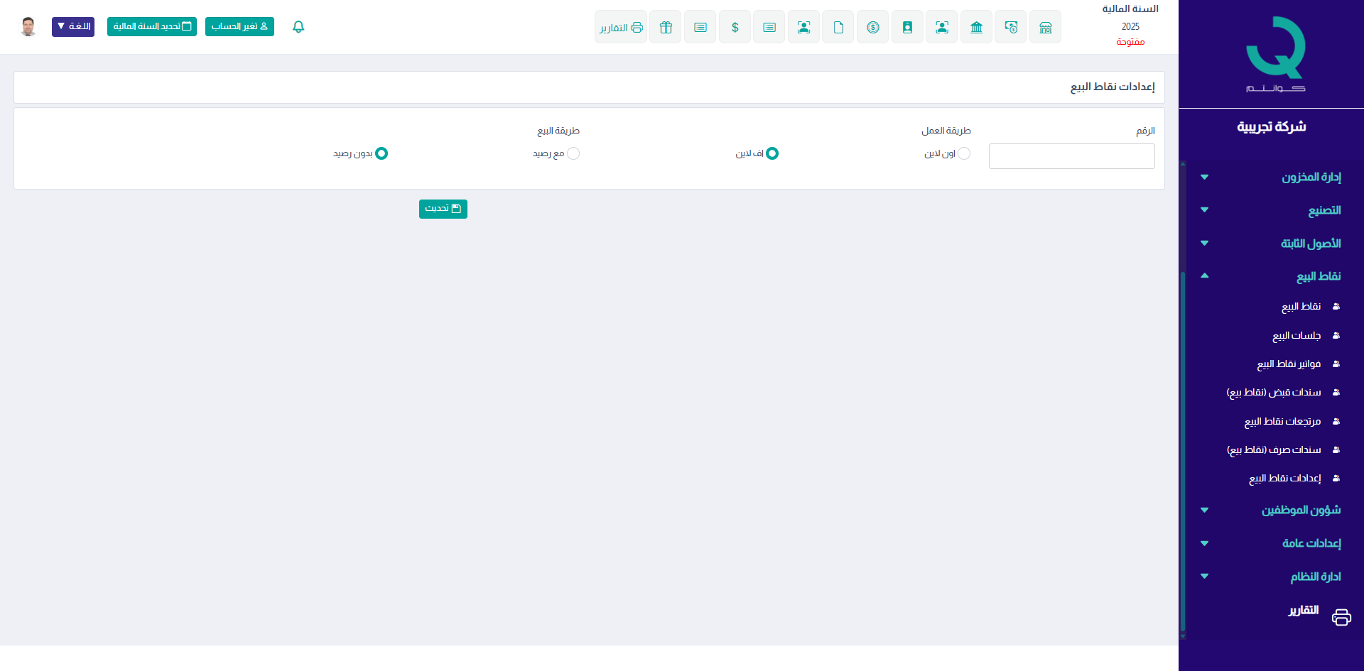 - تشغيل نقاط البيع داخل النظام