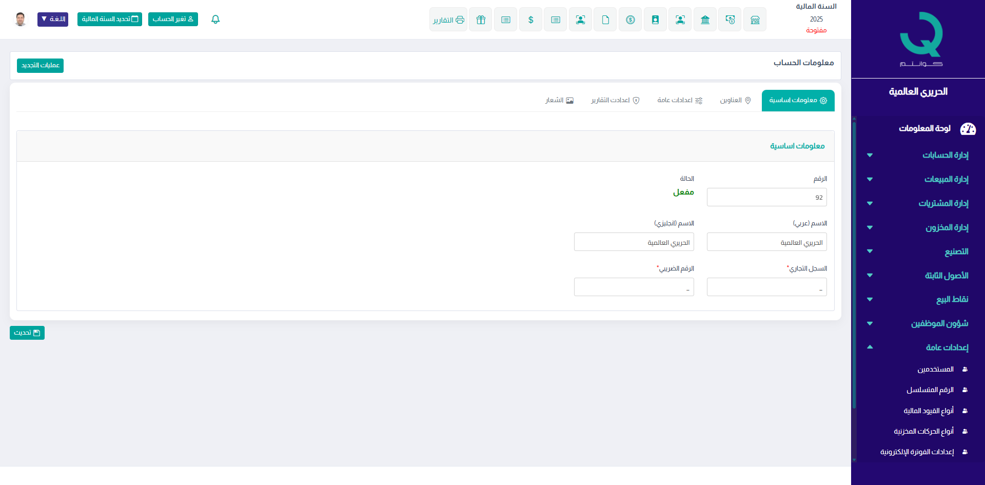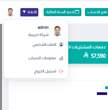تتيح قائمة المستخدم للمستخدم التحكم في بياناته الشخصية وإعدادات حسابه داخل نظام كوانتم ERP، كما توفر اختصارات سريعة لإدارة الحساب وتسجيل الخروج.