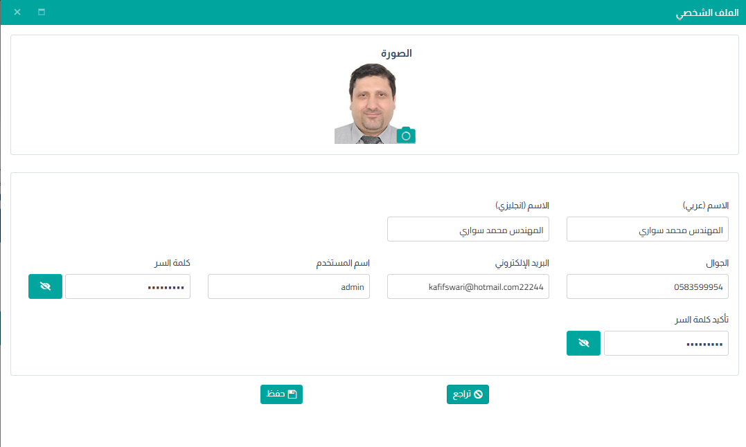 خيار الملف الشخصي يتيح للمستخدم تعديل بياناته الأساسية مثل:
